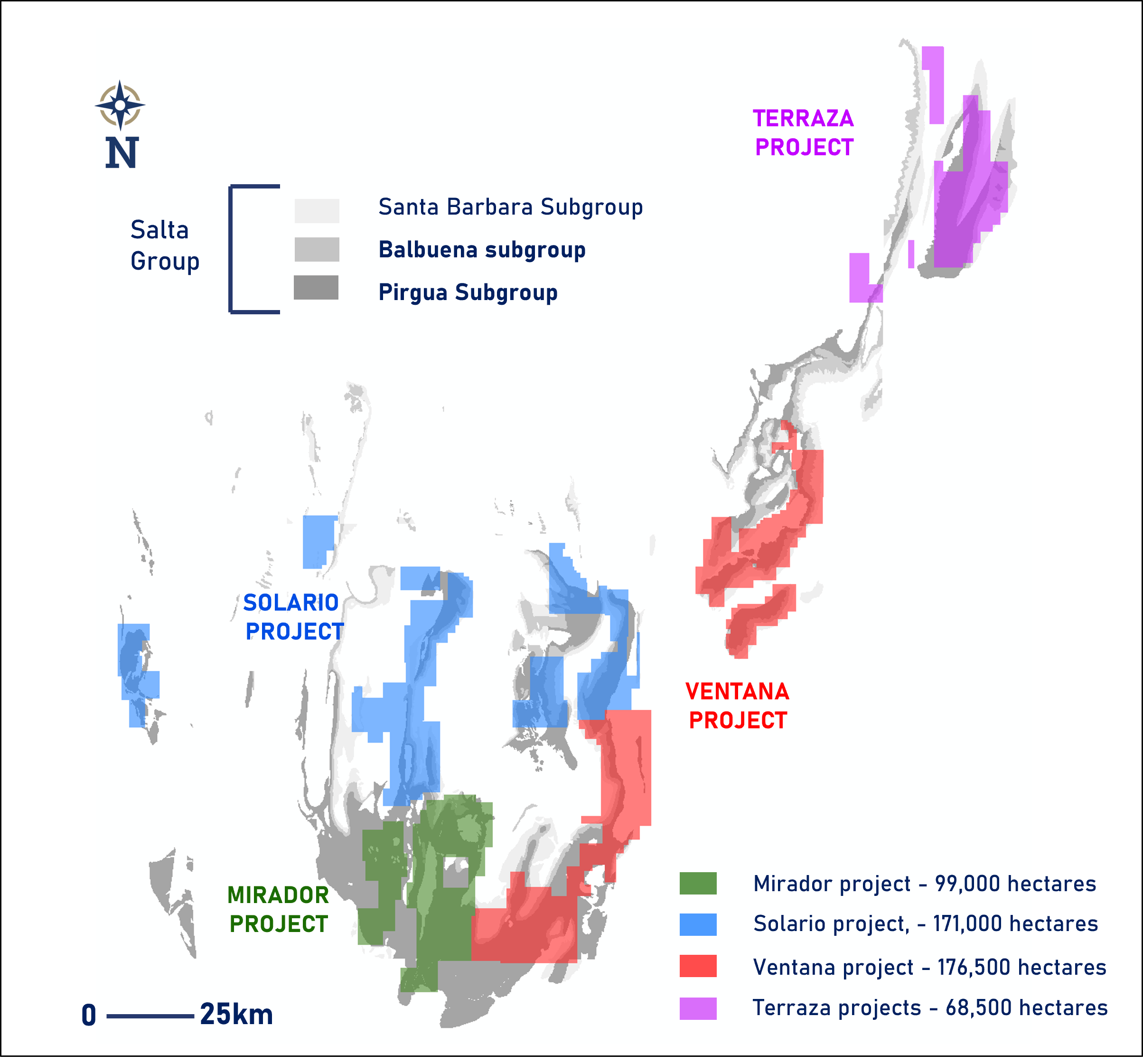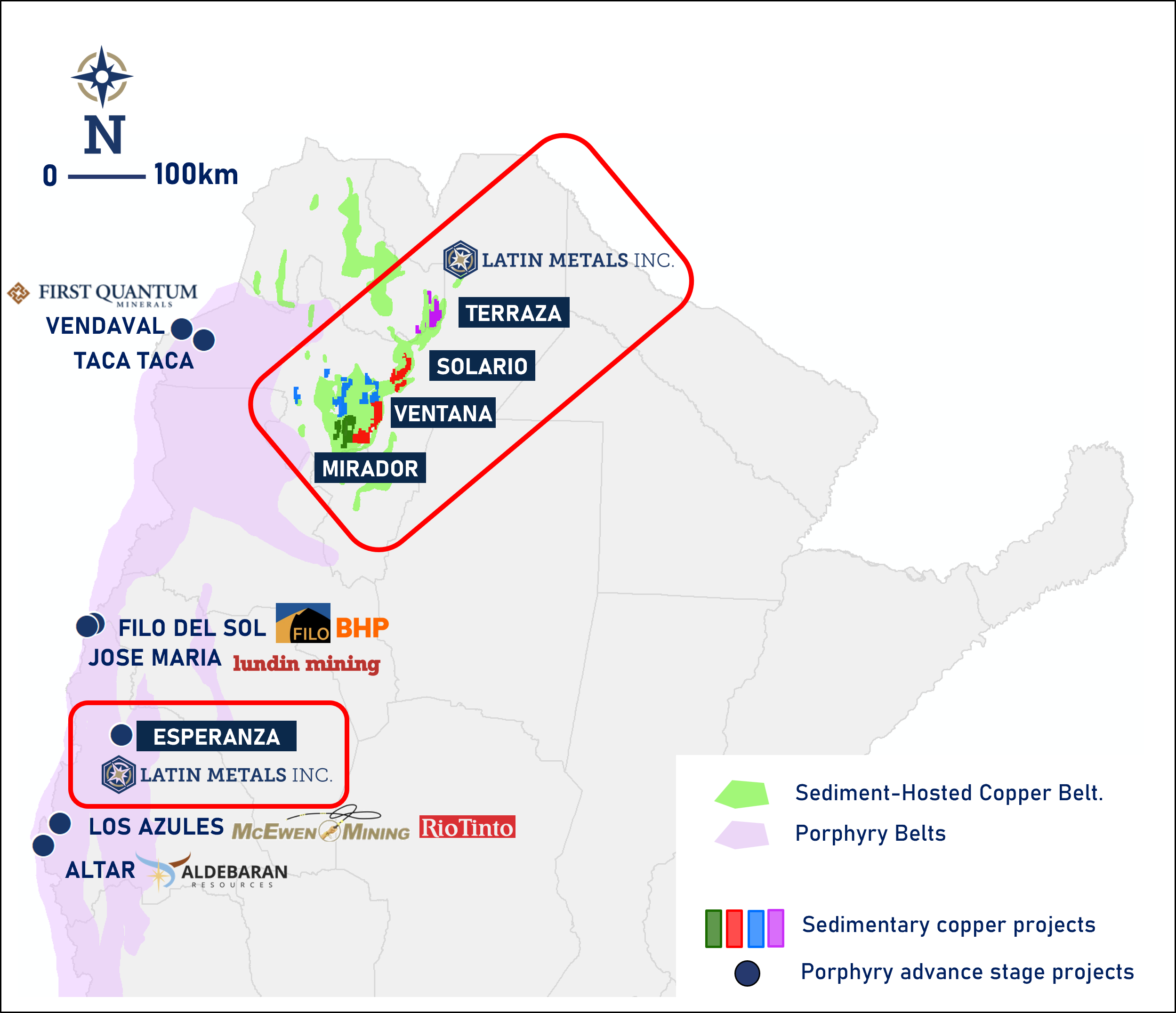 Figure 2: Overview of Latin Metals’ copper interests in Argentina, including the newly acquired Terraza copper project in Juyay Province, the Solario, Ventana and Mirador