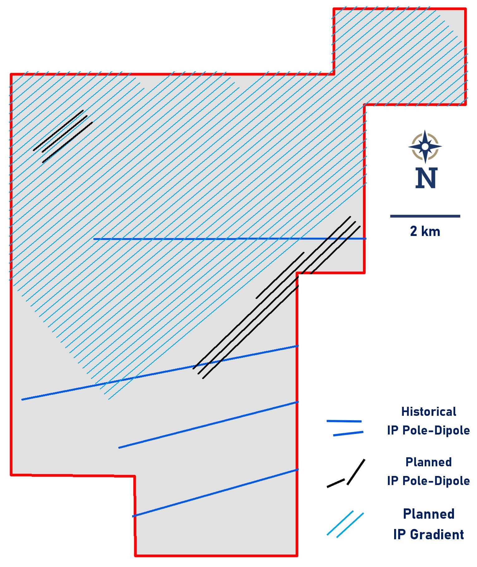 Figure 1: Location of extensive Induced polarization surveys at Cerro Bayo